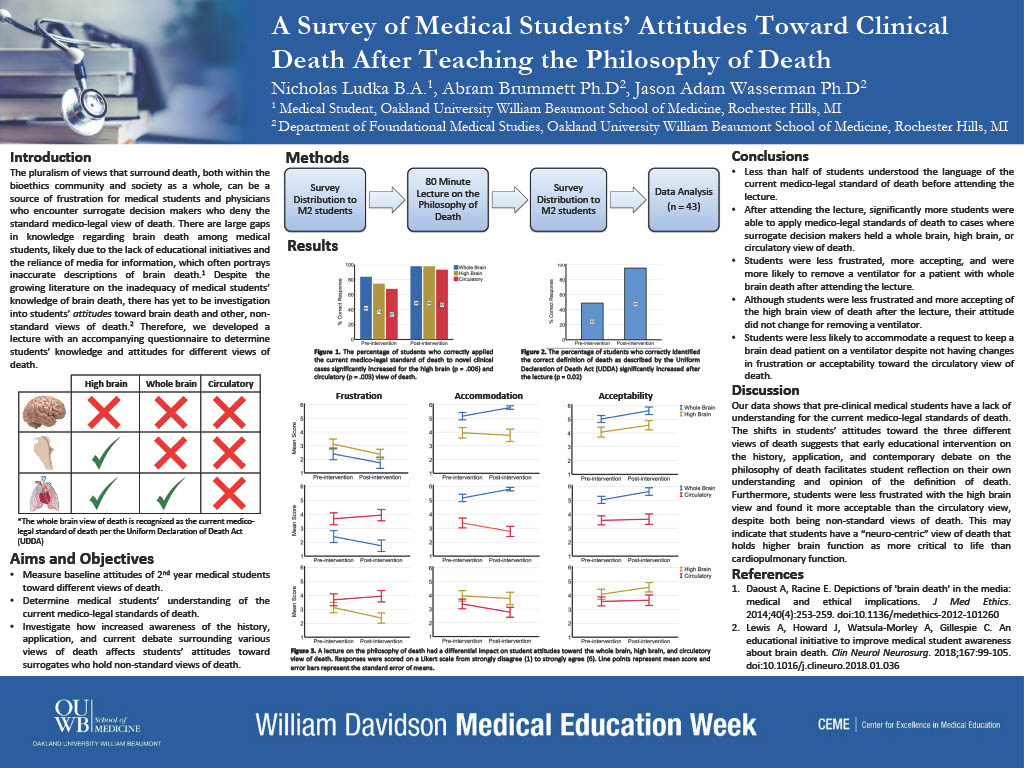 OUWB's Medical Education Week also features poster abstracts reviewed and selected by the poster committee based on clarity, organization, and applicability to education.