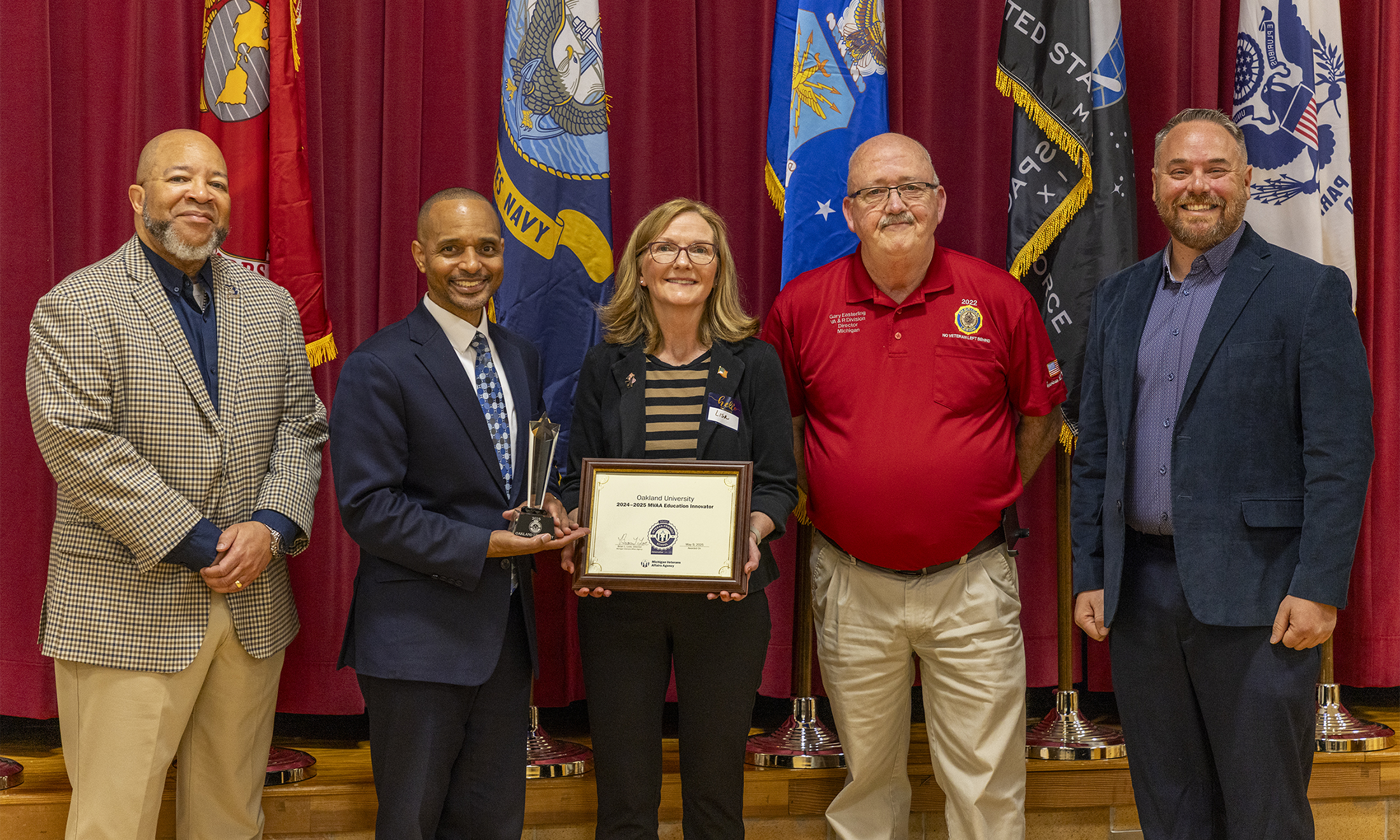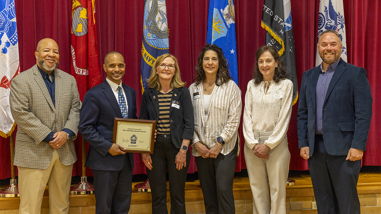 Oakland University was recently honored as a 2024-25 Education Innovator by the Michigan Veterans Affairs Agency, receiving three Innovation Awards for its collaborative, forward-thinking efforts to support student veterans.
