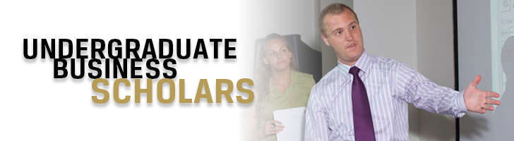 Scholars work in teams (lead by senior-level students) to analyze and present a solution to a specific business challenge to a panel of faculty and business professional judges. Prizes are awarded to the winning team. Previous prizes have included tuition credit, iPads and Microsoft Surfaces).