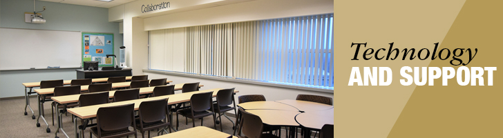 The 350I classroom is a collaborative space designed to function as a small classroom but has many features that allow our students to practice presentations and more.