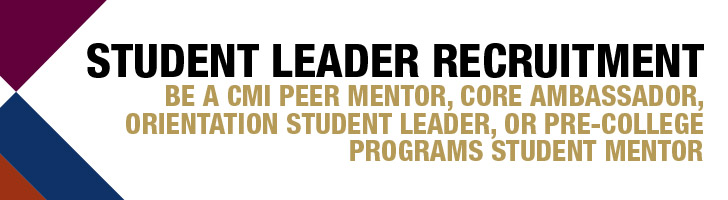 - CMI Peer Mentor, CMI CORE Ambassador positions run during the fall and winter semesters with training week/CORE Bridge week running during the summer