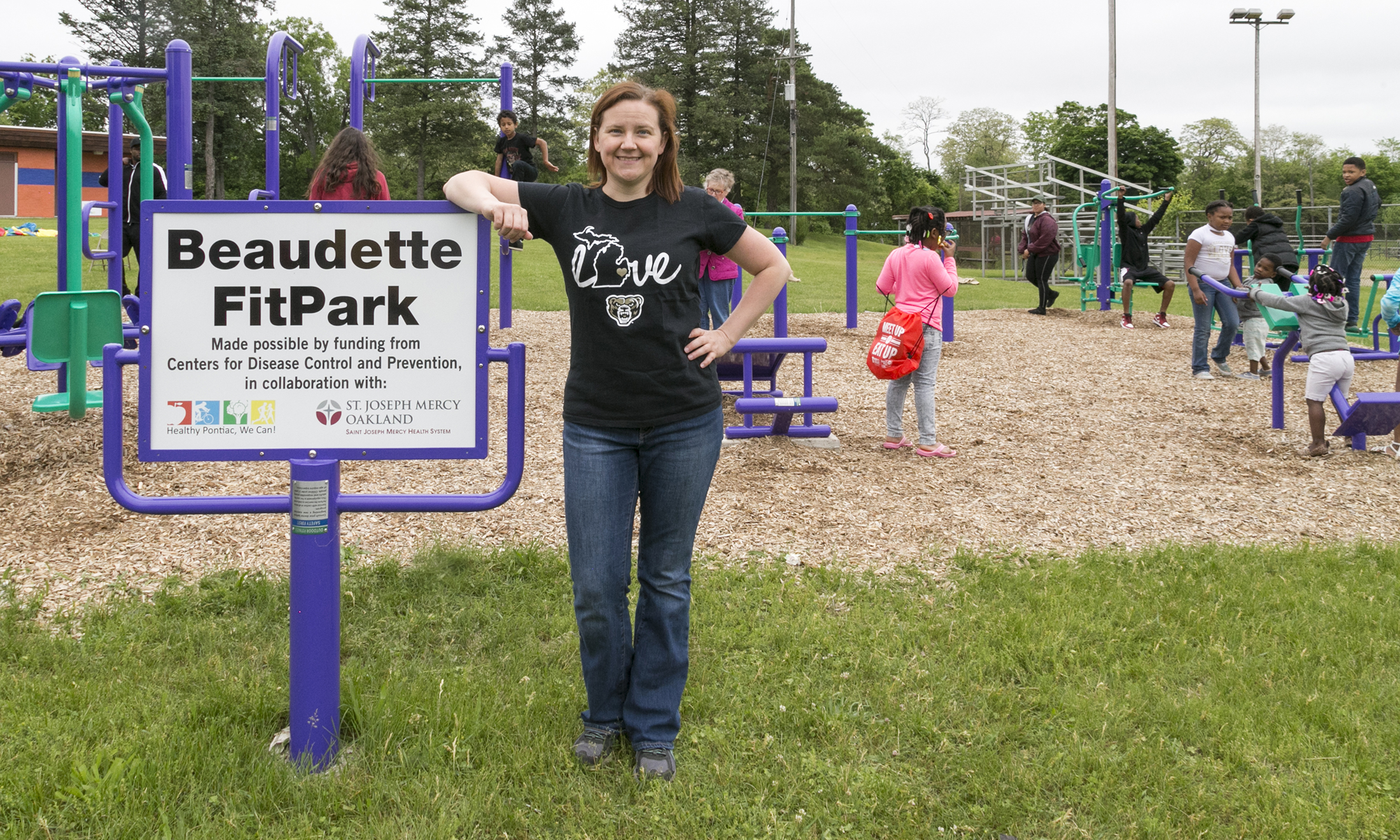 In the “Take Back the Sidewalk” program collaborating with the Healthy Pontiac, We Can! Coalition, students and faculty join community partners in walking the city’s streets to find neighborhoods with the greatest need for new sidewalks, bike lanes and crosswalks. This campaign is in its fourth year and has led to a safer and more enjoyable environment for Pontiac residents.