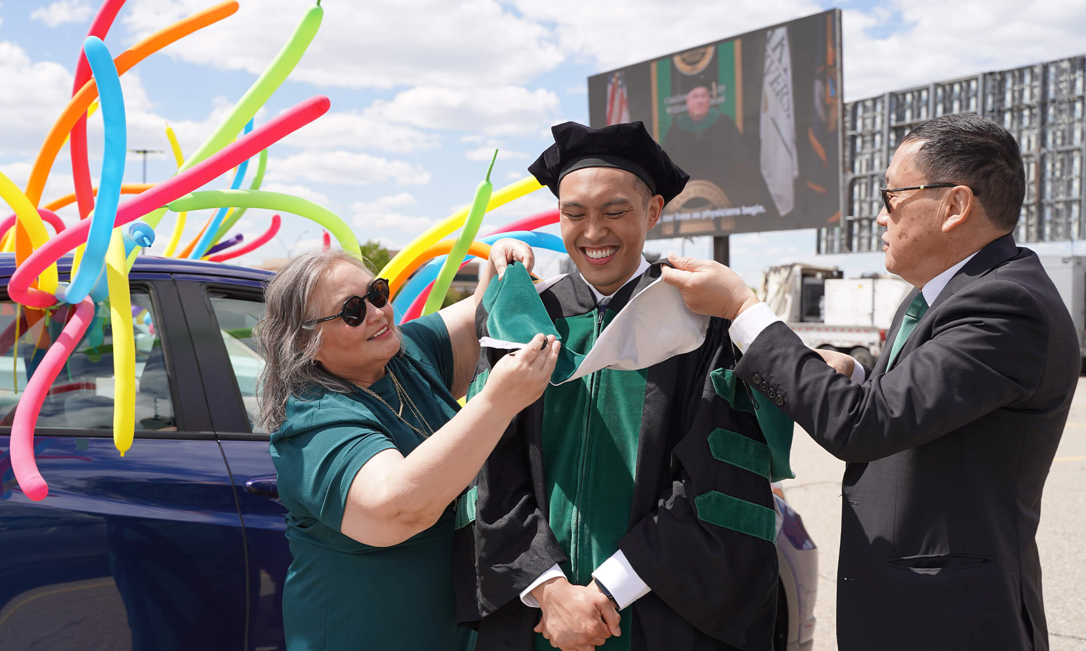 The last time Kevin and Trent had been together in the same place at the same time was for the OUWB Class of 2021 commencement that had to be held outdoors, in one of Oakland University’s parking lots, due to the COVID-19 pandemic.