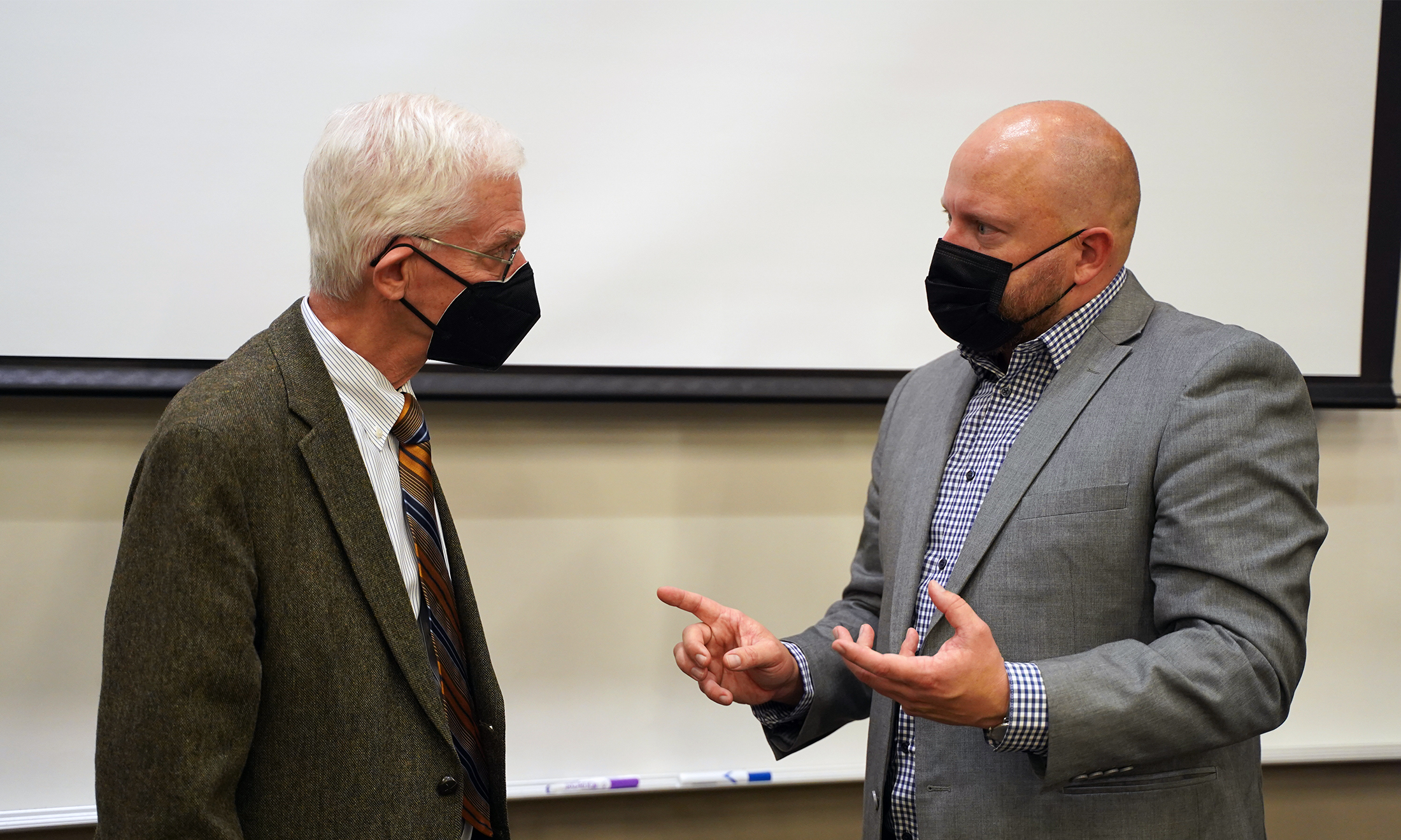 A total of about 50 people listened to a lecture from Tyler S. Gibb, J.D., Ph.D., co-chair of the Department of Medical Ethics, Humanities, and Law at Western Michigan University Homer Stryker M.D. School of Medicine.