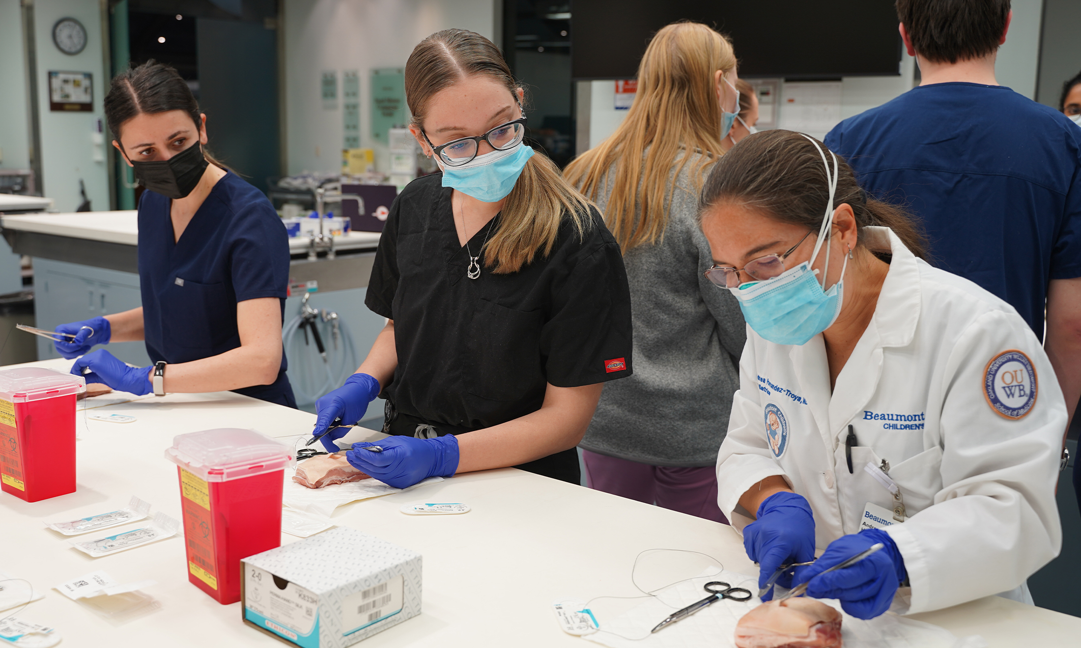 The Pediatric Interest Group (PIG) offered a clinical skills event Nov. 14 at the Marcia & Eugene Applebaum Simulation Learning Institute at Corewell Health William Beaumont University Hospital in Royal Oak.
