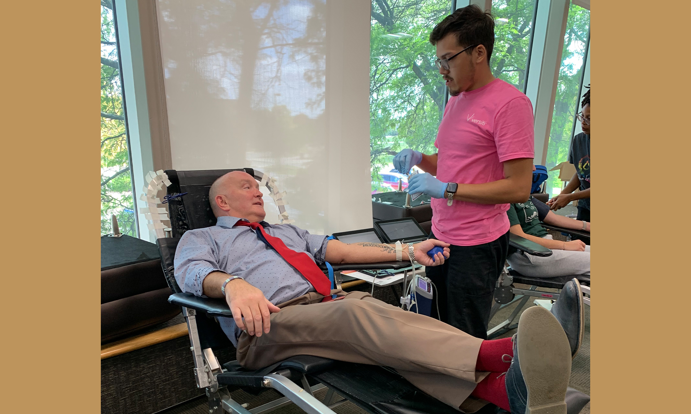 Doug Gould, Ph.D., professor and chair, Department of Foundational Medical Studies, OUWB, donates regularly and as often as he is able. In his previous job at the University of Kentucky College of Medicine he worked his way up to a 10-gallon donor.