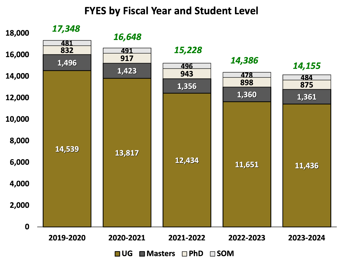 The chart above shows OU’s annual FYES totals for each of the last five years.