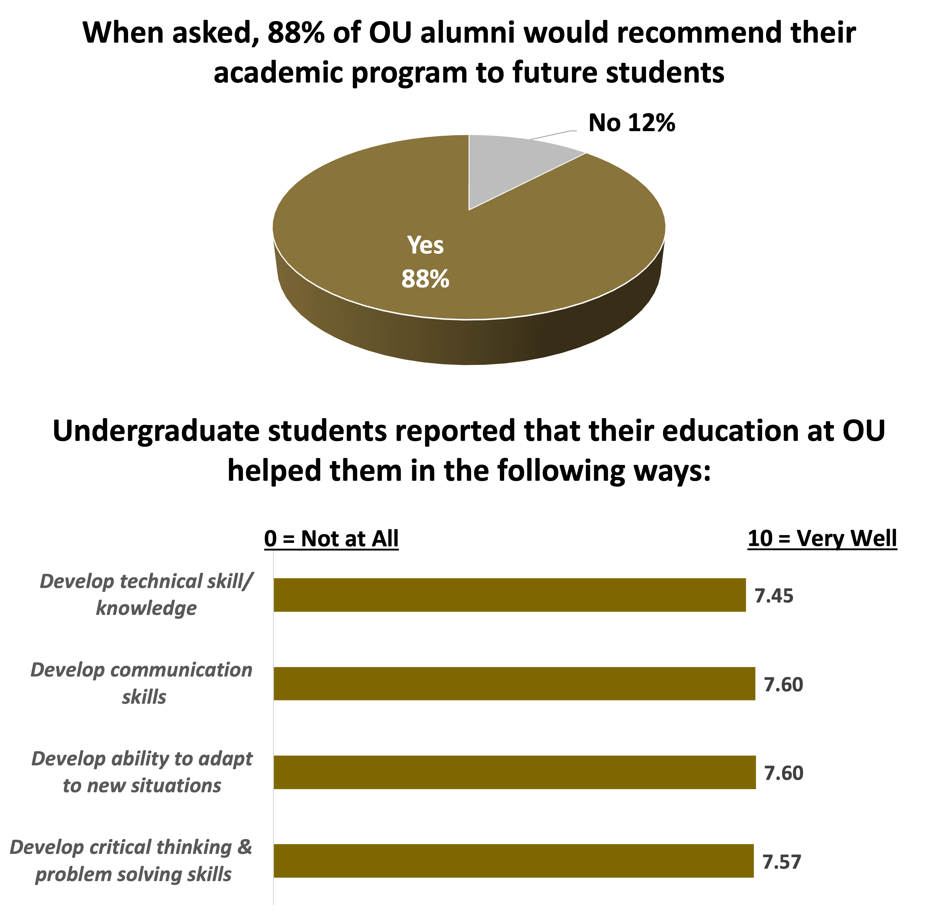 In the fall of 2024, Oakland University alumni were asked to participate in a short survey about their academic outcomes. More than 1,200 alumni responded to the survey. For program specific data, contact the Office of Institutional Research, Assessment, and Data Analytics (OIRA).