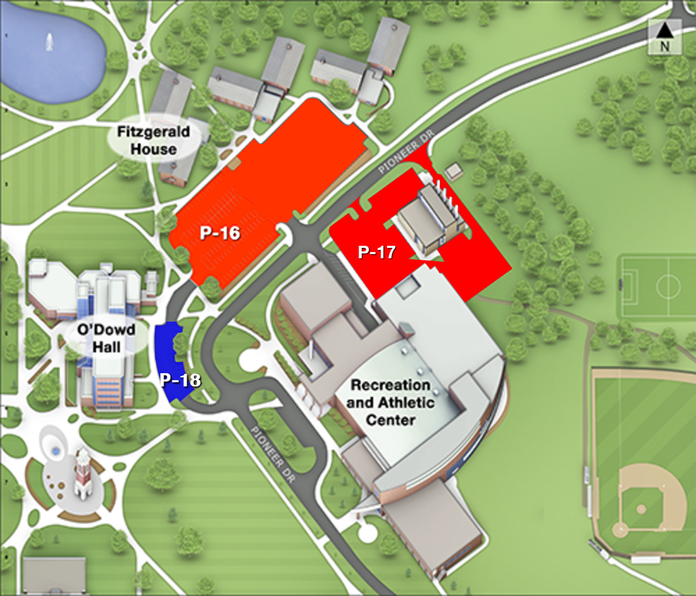 The P-16 and P-17 parking lots – located adjacent to O'Dowd Hall and the Central Heating Plant – will be closed in preparation for and during Fall 2022 commencement exercises.