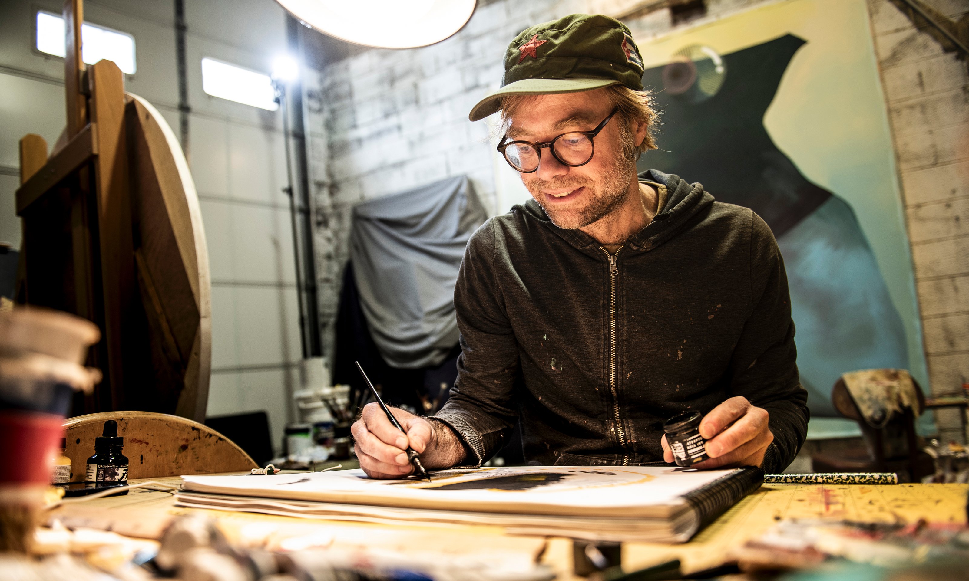 Between painting murals, you can find Ross tucked away in his studio amongst cascading collections of CDs and records, being watched by a photo of his 18-month-old son and the paintings of his wife and a late friend. He’ll likely have a Grateful Dead record playing while he works on his favorite piece of art: the next one.