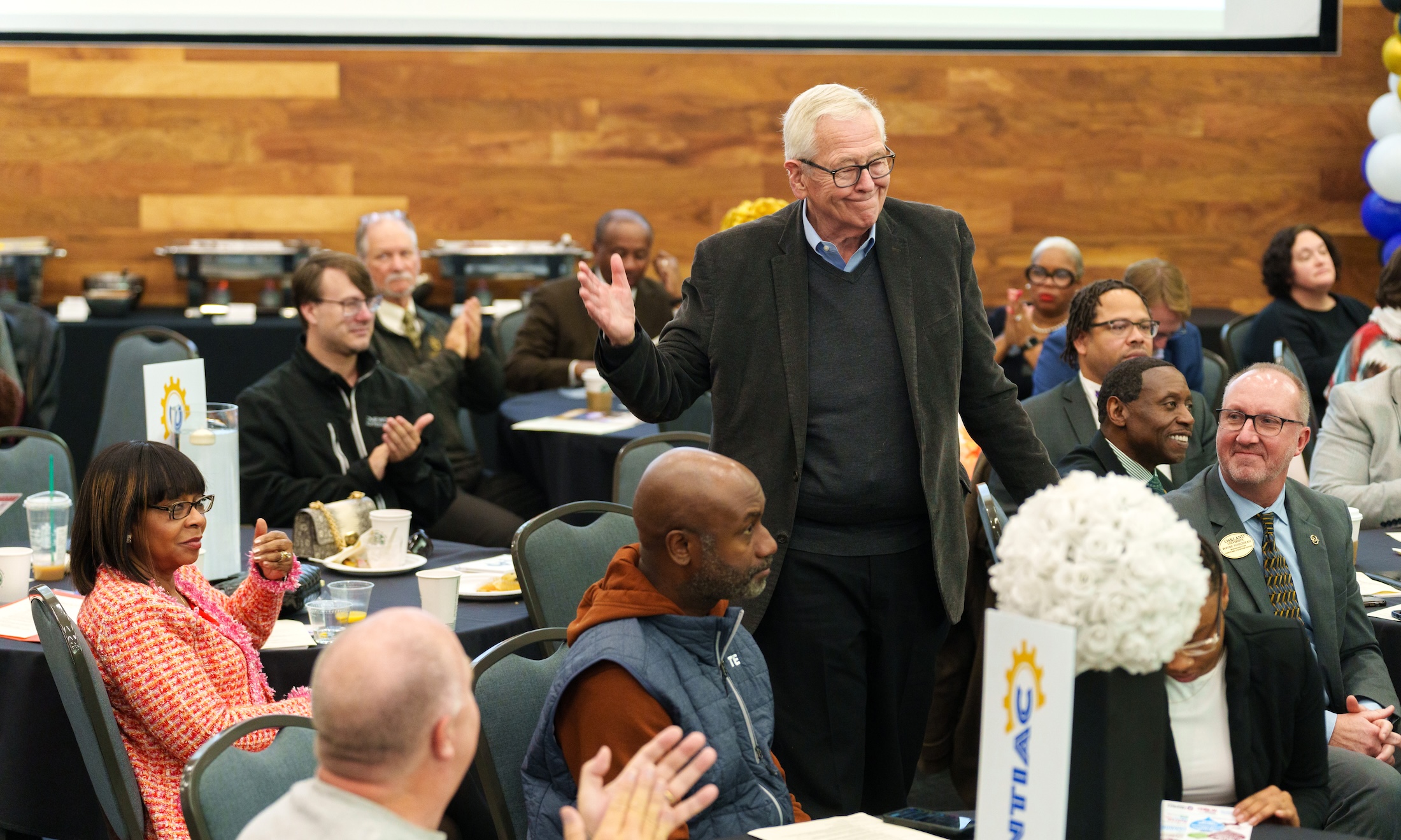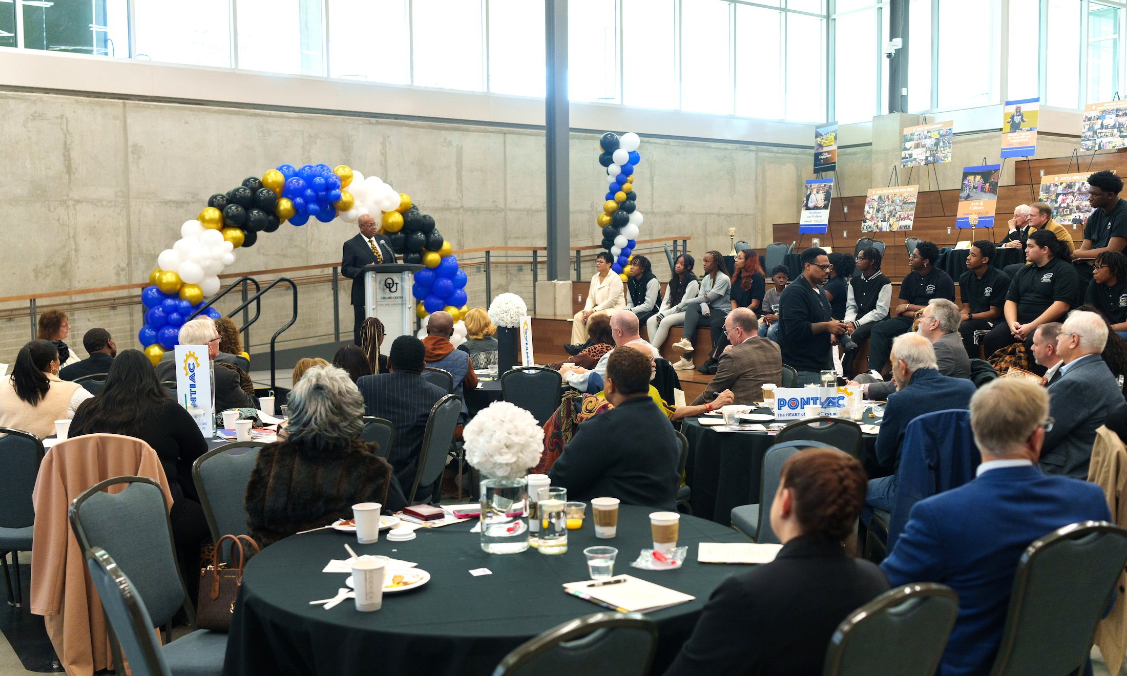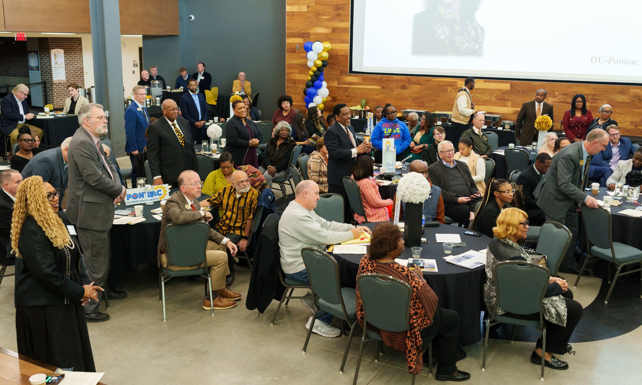 Representatives from Oakland University, the City of Pontiac and the community gathered on Saturday, November 2, for a breakfast and networking event at the Oakland Center Habitat to celebrate a decade of cooperation and collaboration called the OU-Pontiac Initiative (OUPI) that was established to benefit the Pontiac community.