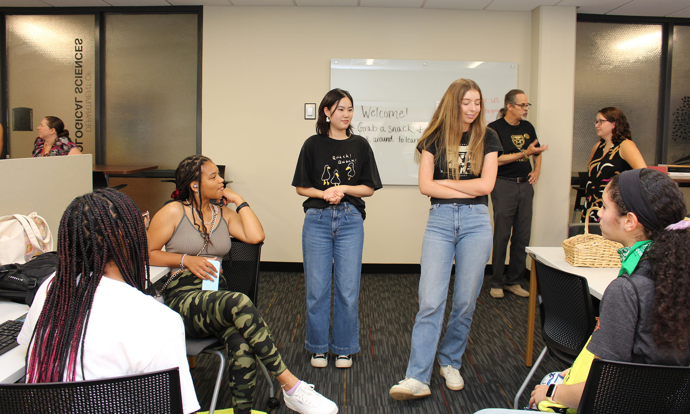The BIO Learning Lounge is staffed by a graduate assistant and four undergraduate peer mentors to answer questions, help students develop study habits and deepen their understanding of biology, from introductory to higher-level concepts.