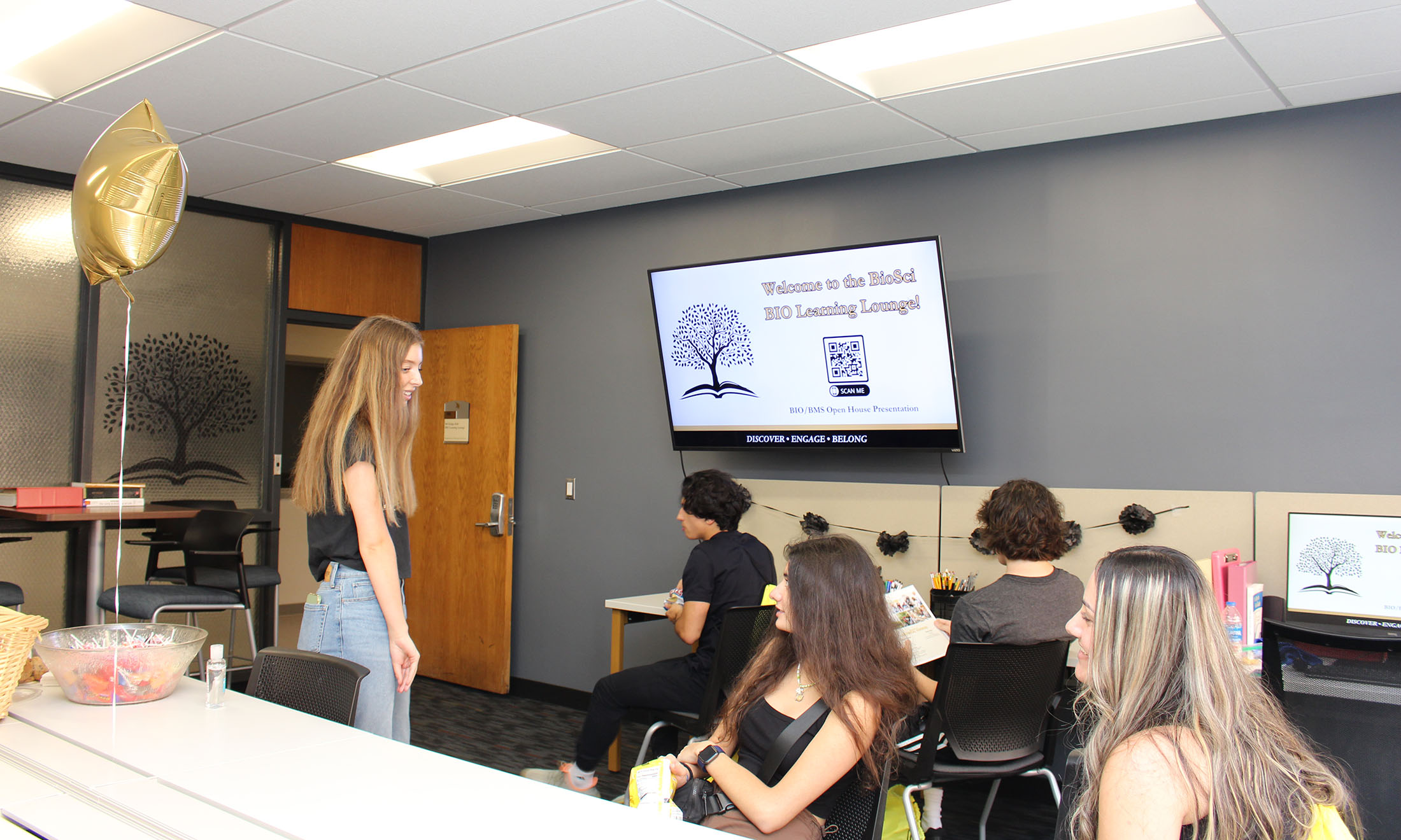 Embracing the slogan “Discover. Engage. Belong.,” a new space has been unveiled on campus to help students succeed in their biology courses. Located in 166 Dodge Hall, the BIO Learning Lounge is open to any student taking a course offered by the Department of Biological Sciences.