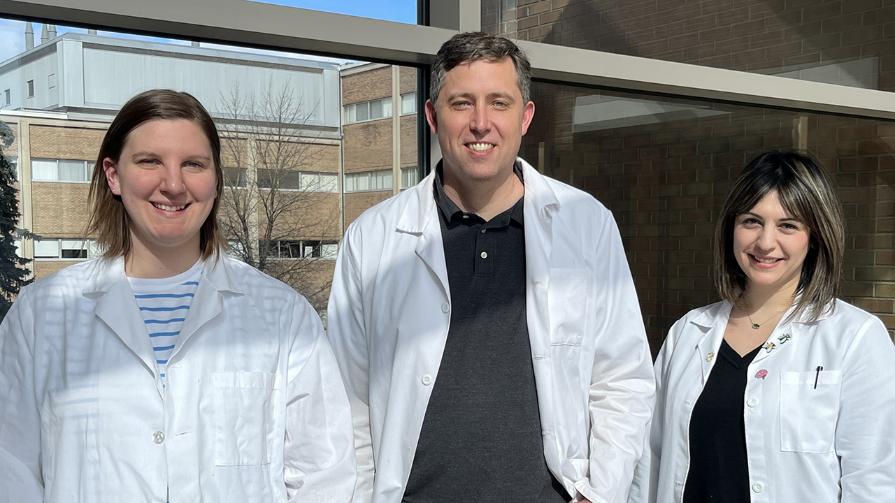 From left: Ph.D. student Alexandra Atang, Dr. Adam Avery, assistant professor of biochemistry, and Ph.D. student Sarah Denha helped develop a new method to evaluate drugs to see if they can be used to treat a rare neurological disorder called Spinocerebellar ataxia type 5.