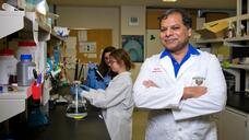 Aisha Zanib, lab manager and undergraduate research assistant for the Biochemistry and Endocrinology Laboratory in the Department of Clinical and Diagnostic Sciences, conducts breast cancer research under the guidance of Dr. Sumit Dinda, department chair and professor. |